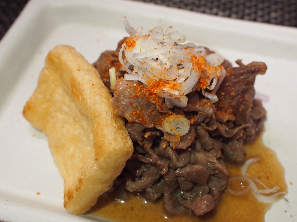 這次推薦的是「肉店推薦的牛肉盤套餐」,限量20份!在平常的牛肉盤上加上油炸豆皮作為配料。請搭配柚子醋清爽享用。夏季限定的青紅莓GROT也很推薦!