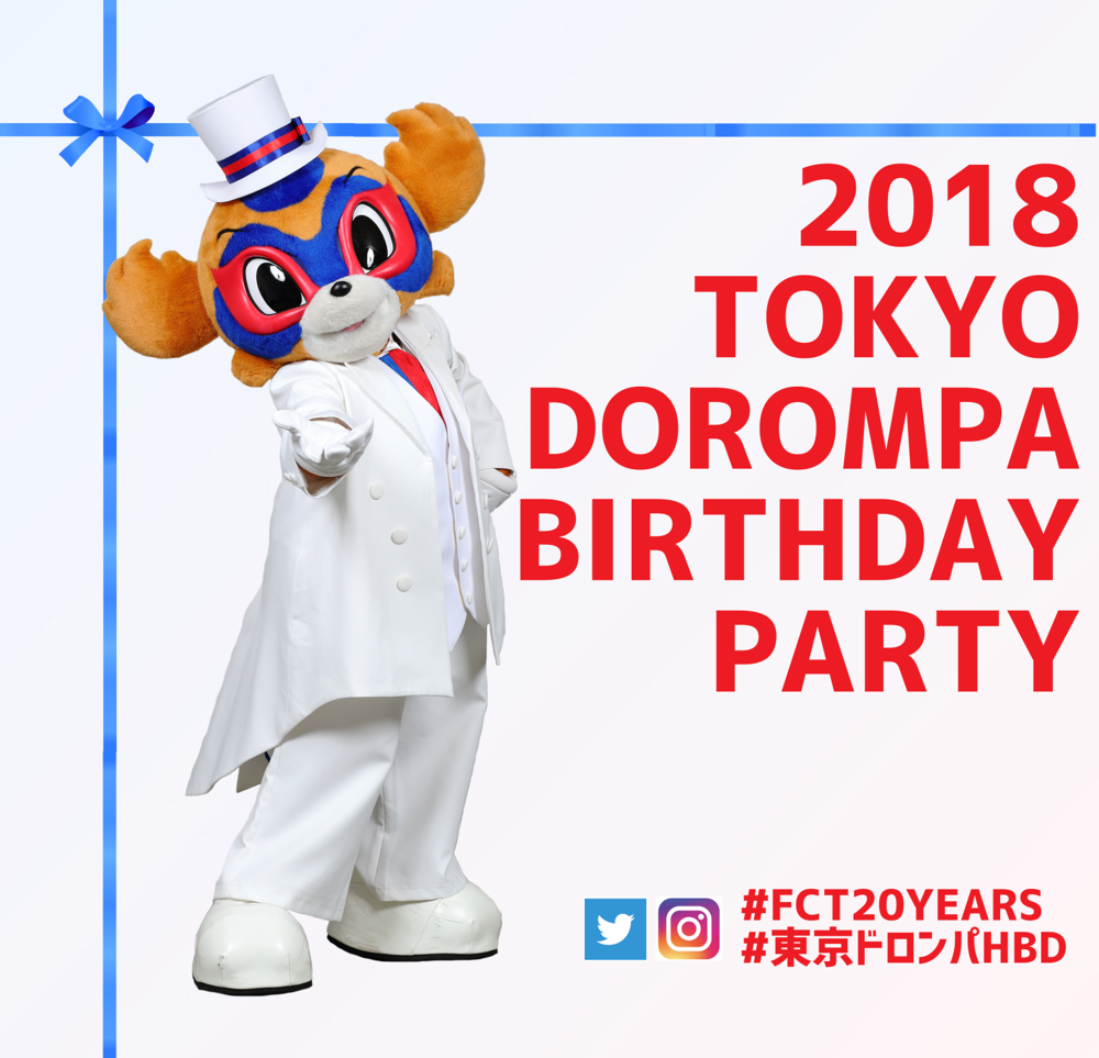 這次FC東京為了慶祝10月1日迎來的球隊吉祥物「TOKYO DOROMPA」生日,以及吉祥物就任10周年,將舉辦「2018 TOKYO DOROMPA 生日派對~球隊吉祥物就任10周年紀念~」,特此通知。
