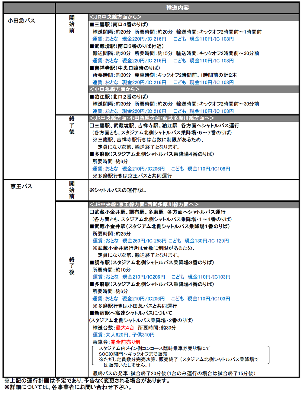 11/10(周六)2018明治安田生命J1聯賽第32節vsJúbilo磐田(14:00開球/味之素體育館)將提供接駁巴士及路線巴士服務,特此通知。