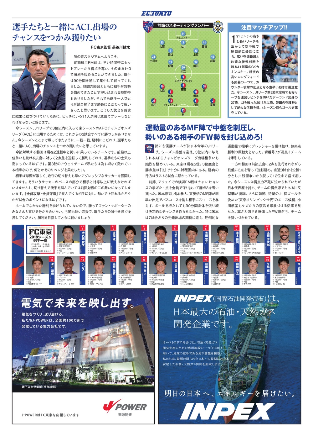 □官方比賽日程2018 第19號(封面:田邊草民選手)