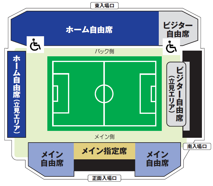 後看台側(主場、訪客自由席內/主場側約10席、訪客側約10席)
