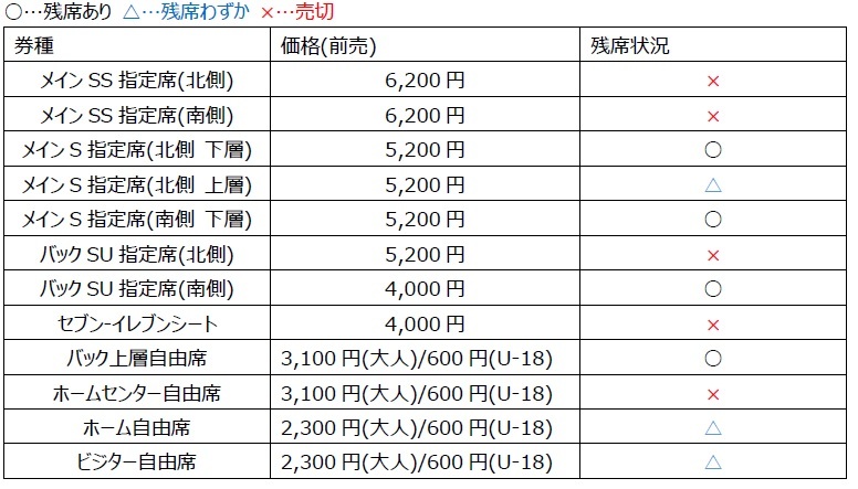 主看台SS指定席、7-11座位、家樂福自由席已停止販售。