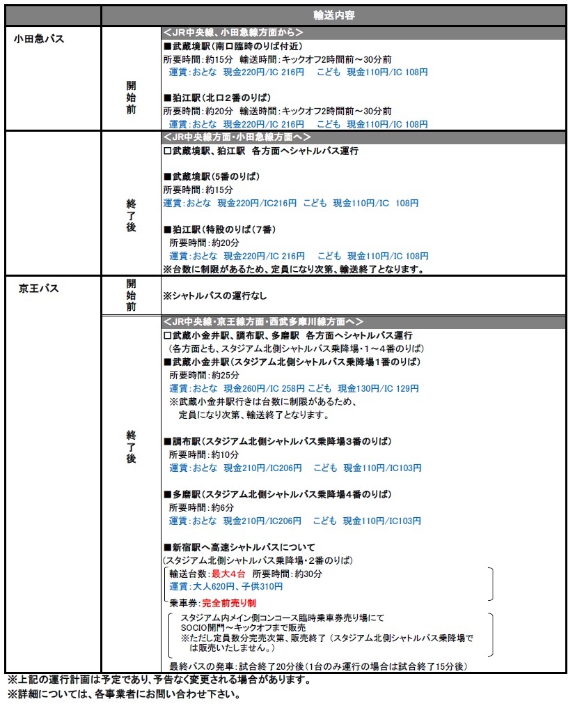 5/12(周日)2019明治安田生命J1聯賽第11節對Júbilo磐田(14:00開球/味之素體育館)將提供接駁巴士及路線巴士服務的相關資訊。