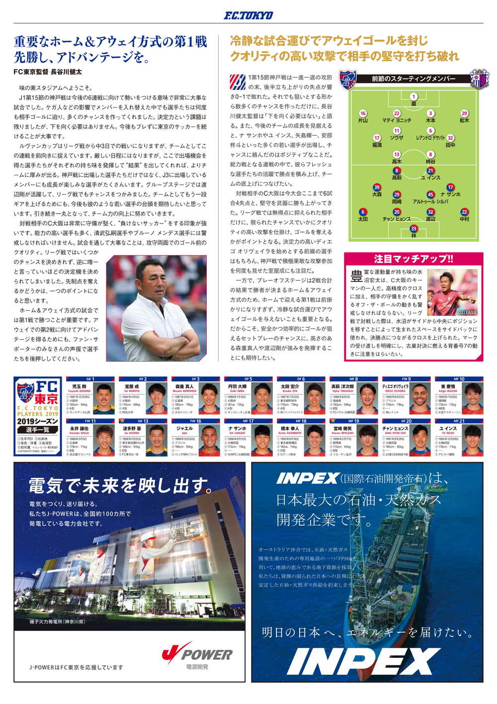 6/19(周三)2019J聯賽 YBC Levain盃 附加賽階段第1戰 vs Cerezo大阪(19:00開球/味之素體育館)的官方比賽日程表,現公告如下。