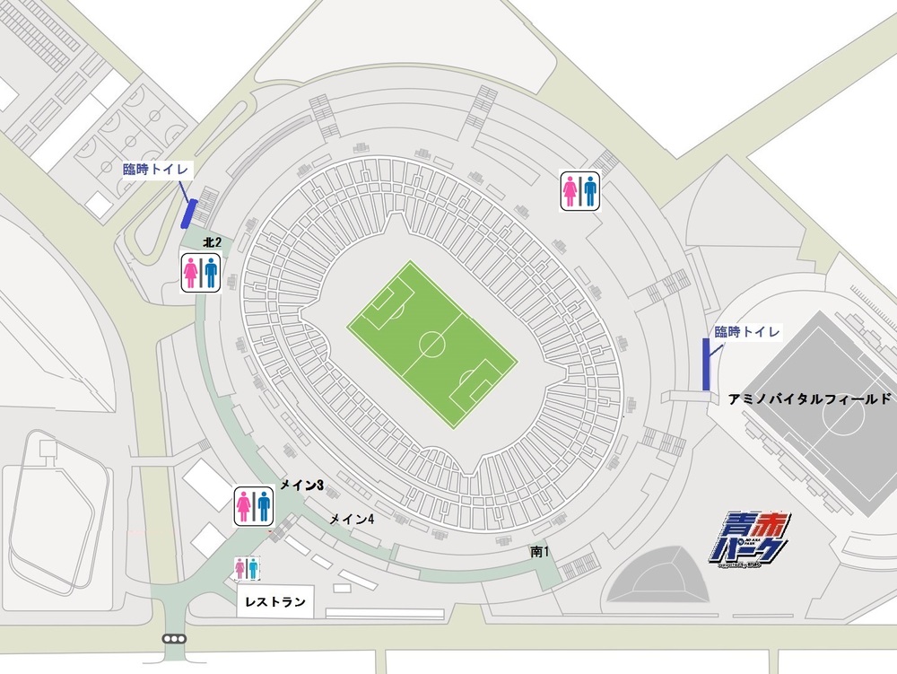 ※臨時廁所因廁所改修工程已完成,將於7月7日(周日)Gamba大阪比賽結束後停止提供服務。之後請使用附近的場外廁所。