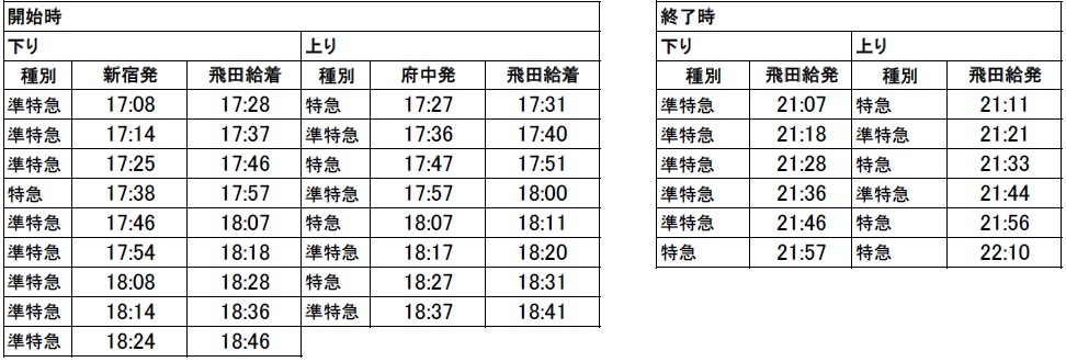 下行…飛田給發車21:07~21:57的特急・準特急/共6班