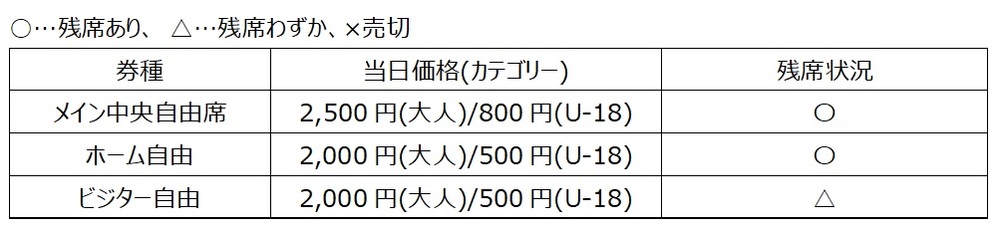 ※主看台中央自由席達到預定數量後,可能會在未預告的情況下結束當日票販售,敬請事先諒解。