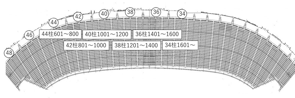 ・在看台內設有依抽籤號碼順序排列的座位區域(請參考柱號)。請確認您的抽籤號碼後,在該區域內等候。※原則上每100號為一個區塊。