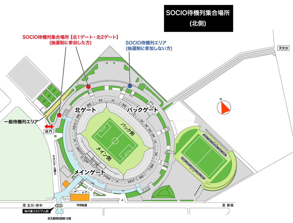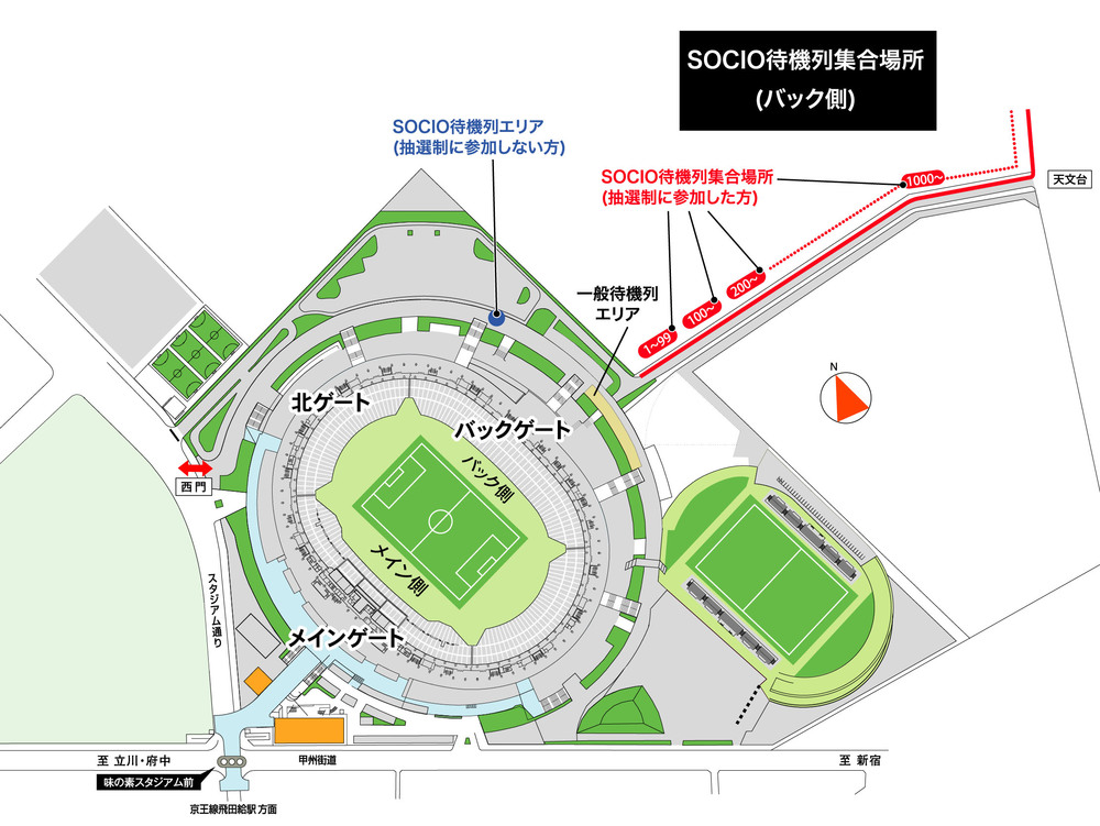 ・請於SOCIO開門時間前1小時30分鐘,從北1門或北2門進入體育場內。