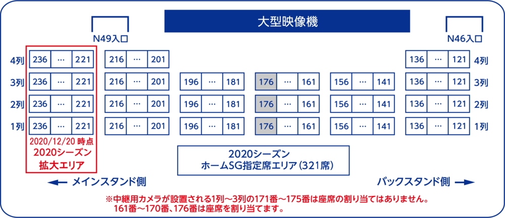 關於2020年季票,因「主場SG指定席」已達預定銷售數量,決定擴大「主場SG指定席」區域,特此通知。
