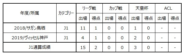 2018.07-2018.12 Sagan鳥栖 ※租借轉會