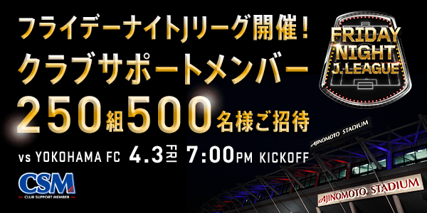 週五夜J聯賽開賽! 4/3(周五)邀請俱樂部支持會員觀戰橫濱FC比賽!