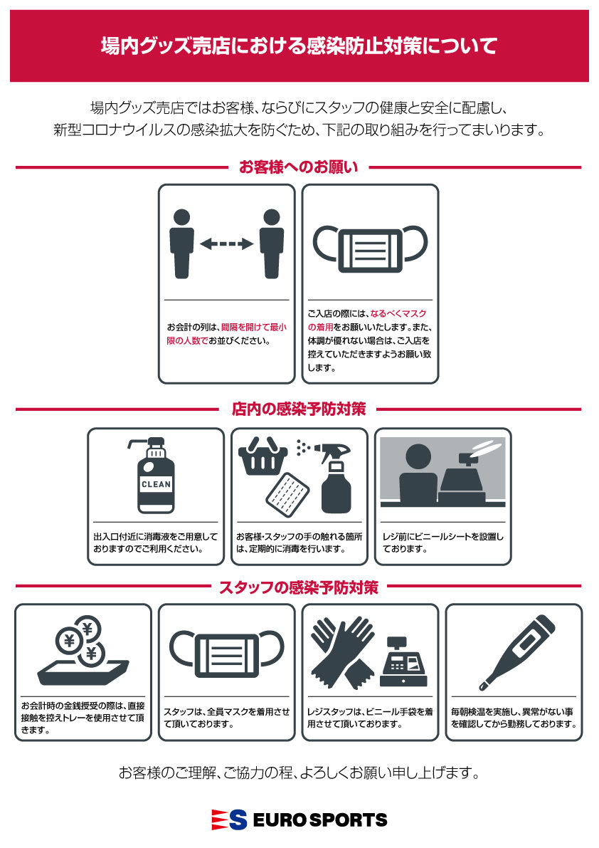 Euro Sports味之素體育館店,當日營業時間將延長至比賽結束後30分鐘。若您想購買上述以外的商品,請利用此服務。