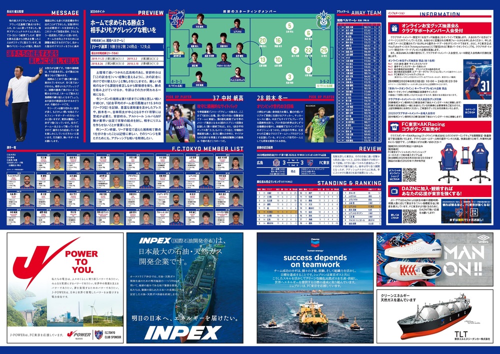 □官方比賽日程2020(封面:安部柊斗 選手)