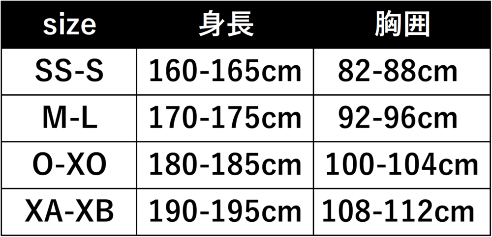 【尺寸展開】SS-S、M-L、O-XO、XA-XB