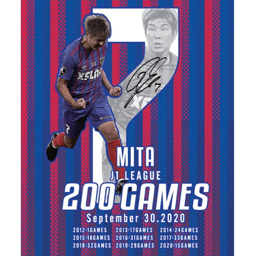 9月30日(周三)2020明治安田生命J1聯賽對浦和Reds比賽中,三田啟貴選手達成J1聯賽戰通算200場出場紀錄。為此紀念,將接受訂購三田啟貴選手J1聯賽戰200場出場紀念商品。