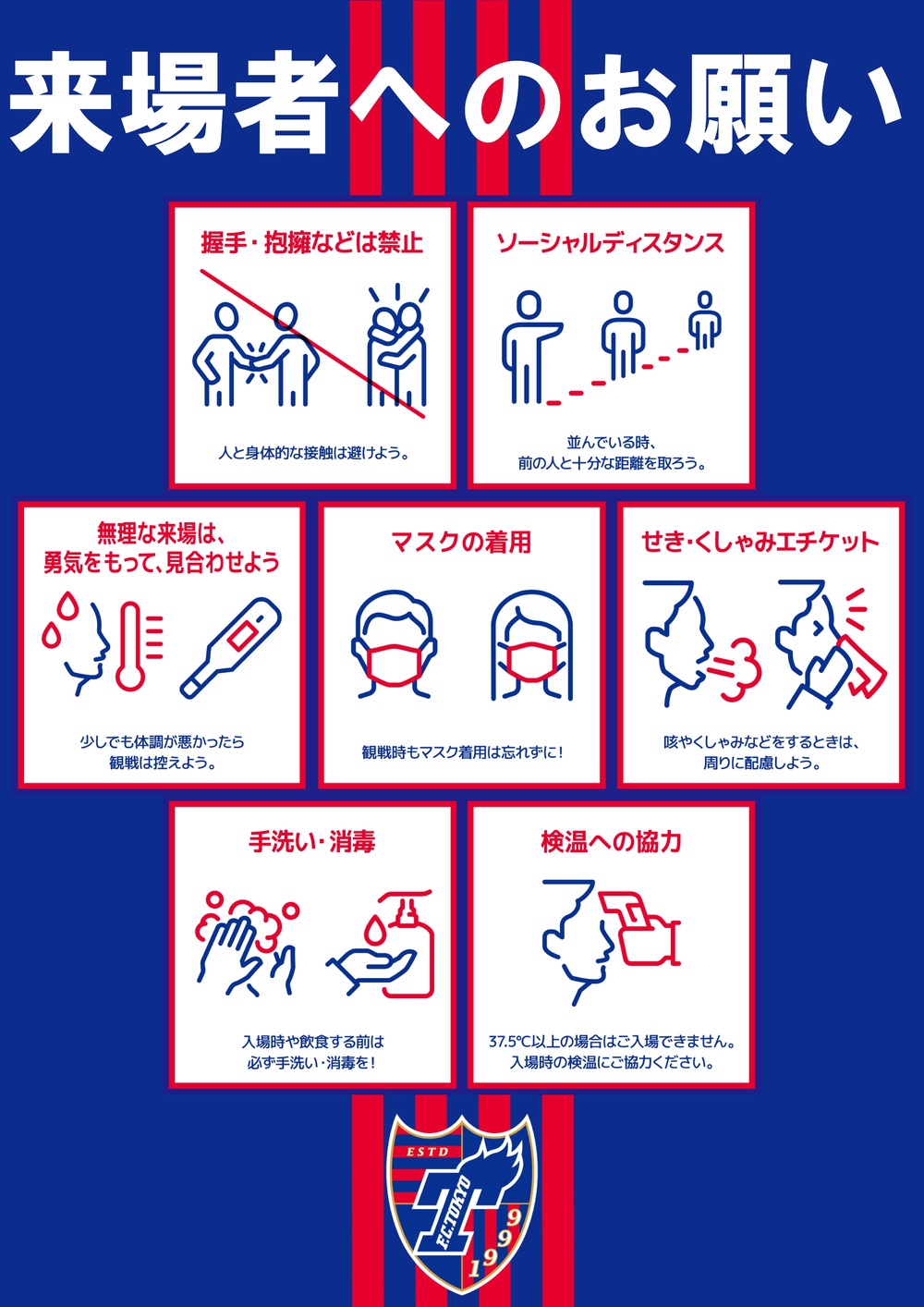 請遵守J聯盟統一禁止規則(J聯盟共通觀賽禮儀&規則)及FC東京足球比賽運營管理規定,以及「J聯盟新型冠狀病毒感染症應對指引」。
