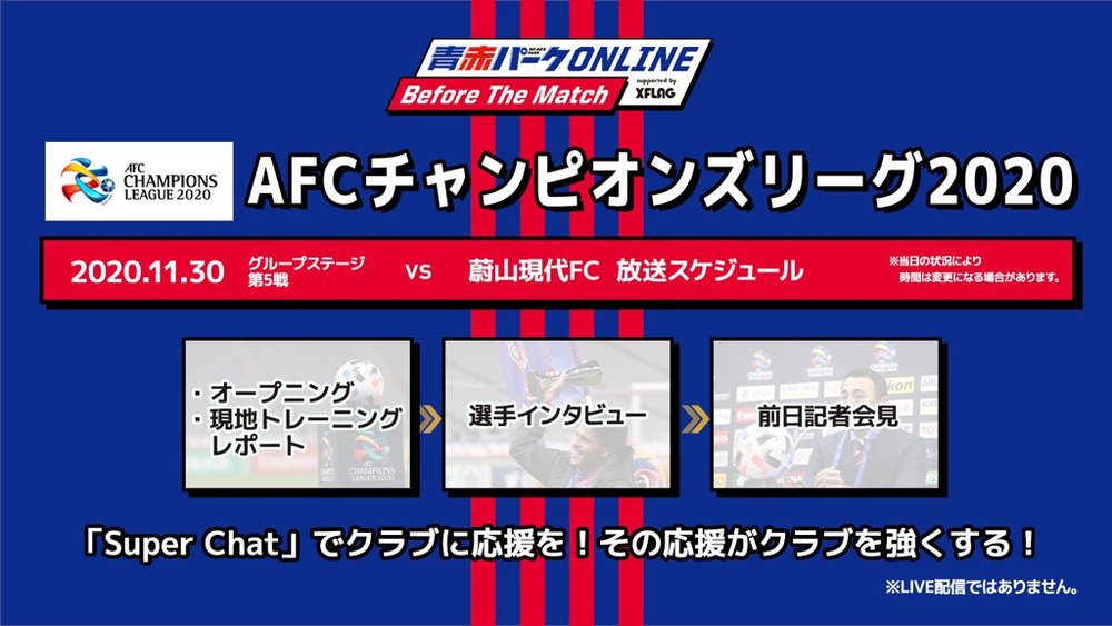 FC東京在比賽日於YouTube【FC東京官方頻道】舉辦『AO-AKA PARK線上Before The Match supported by XFLAG』。