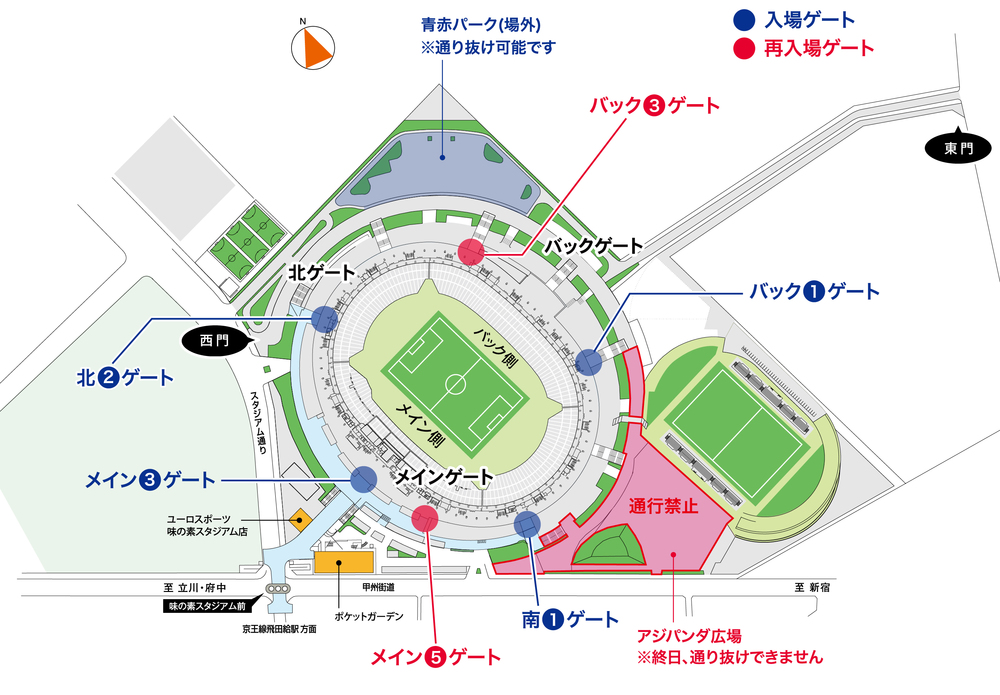 再入場閘門:主看台5號閘門、後看台3號閘門(參照上圖)