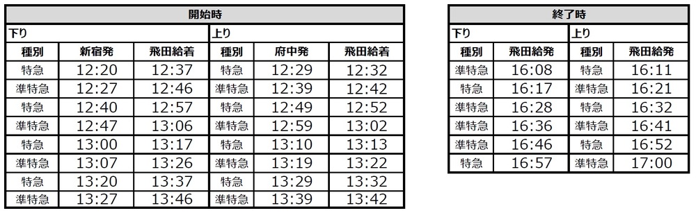 上行…飛田給發車16:11~17:00的特急・準特急/共6班