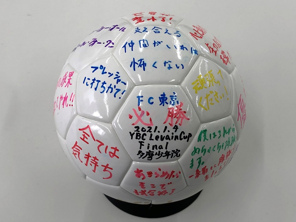 作為感謝,多摩少年院的職員日前拜訪了俱樂部辦公室,並將1月4日(周一)舉行的盧旺盃決賽前,院生們寄語加油的簽名球送交給石川直宏俱樂部溝通員。