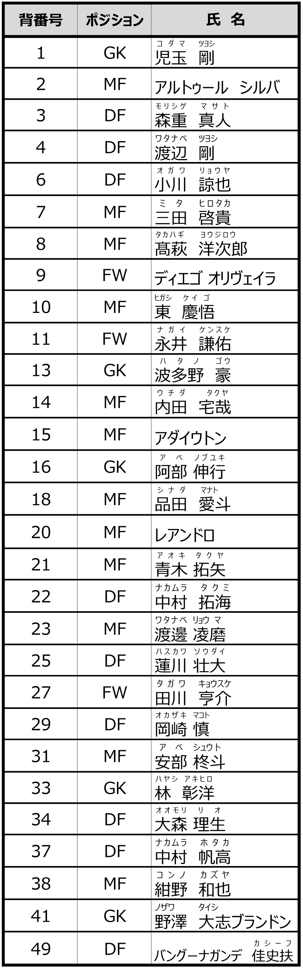 ※球衣的『姓名與號碼』一覽可從這裡確認。