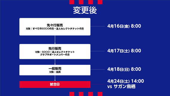 【4/9 補充說明】4/24(周六) 鳥栖戰 門票販售相關