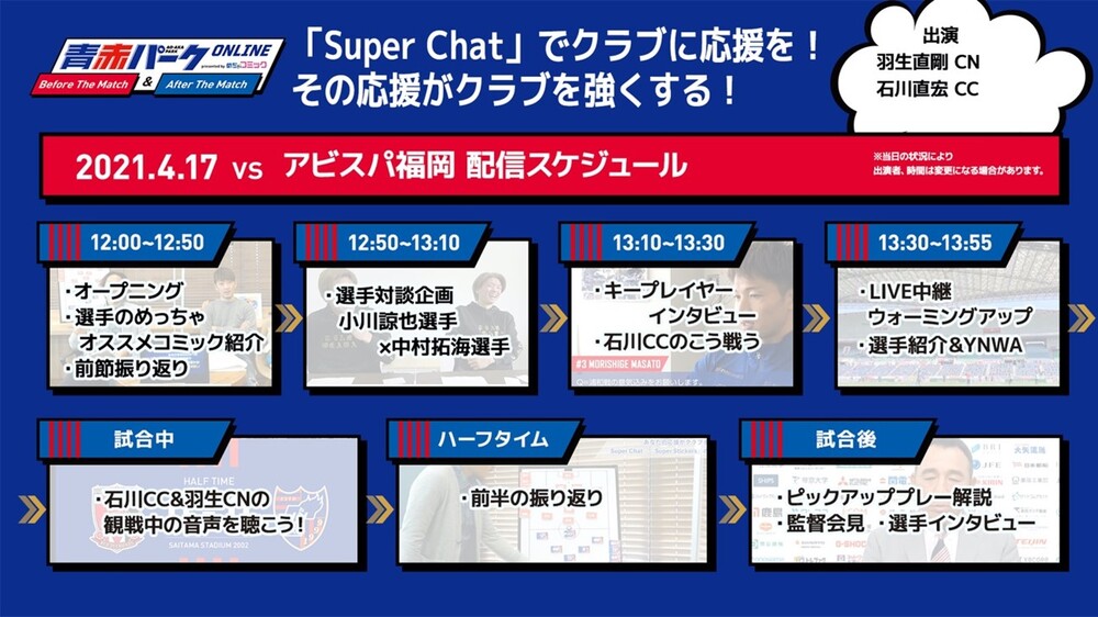 FC東京在J1聯賽的客場比賽及部分主場比賽的賽前賽後,於YouTube【FC東京官方頻道】舉辦LIVE直播企劃『AO-AKA PARK Online Before The Match/After The Match presented by mechacomic』。