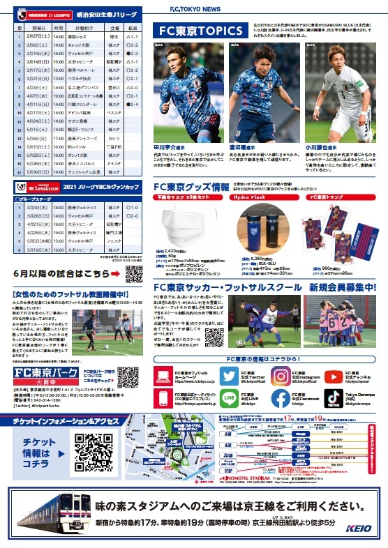 FC東京NEWS vol.176發行通知 2021/4/22 來自俱樂部的通知 FC東京NEWS vol.176已於今日4月22日(周四)起在京王線沿線各車站設置。 本月的贈品活動將贈送與封面相同設計的田川亨介選手手機桌布給所有申請者!截止日期為2021年5月12日(周三)23:59。 請務必查看FC東京新聞! □FC東京NEWS vol.176 ※您也可以從頁面底部的PDF查看。 ▽以PDF格式查看請點此 FCtokyoNEWS_vol176 (4).pdf