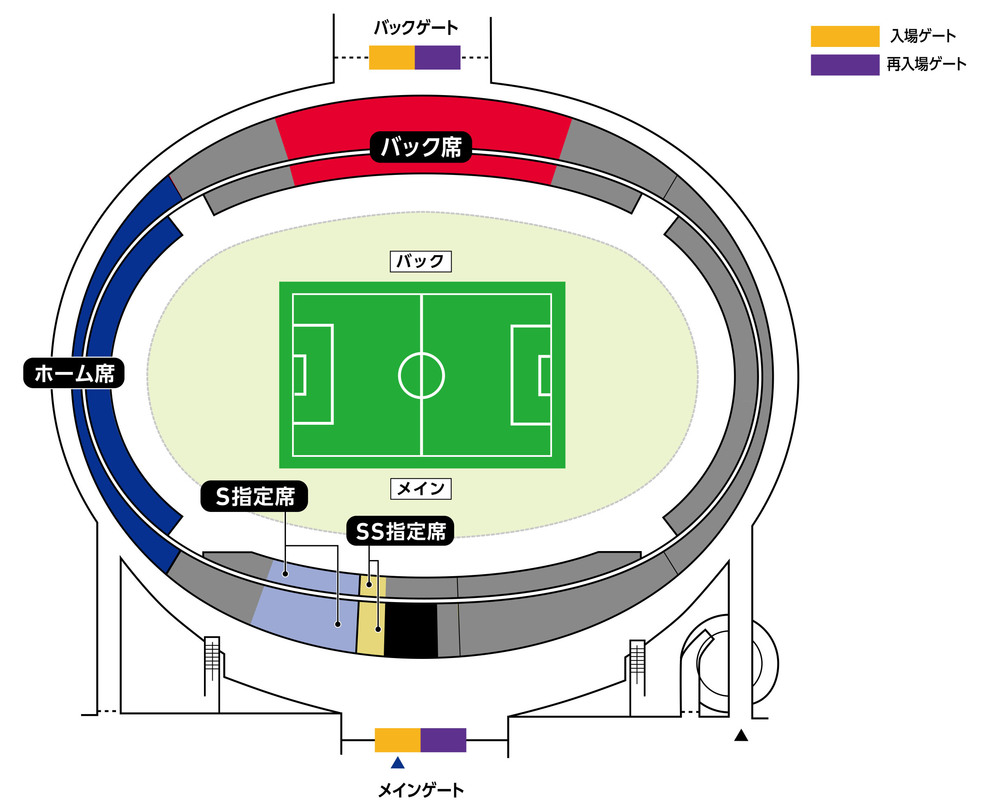 ・主入口:主看台SS指定席、主看台S指定席、主場席