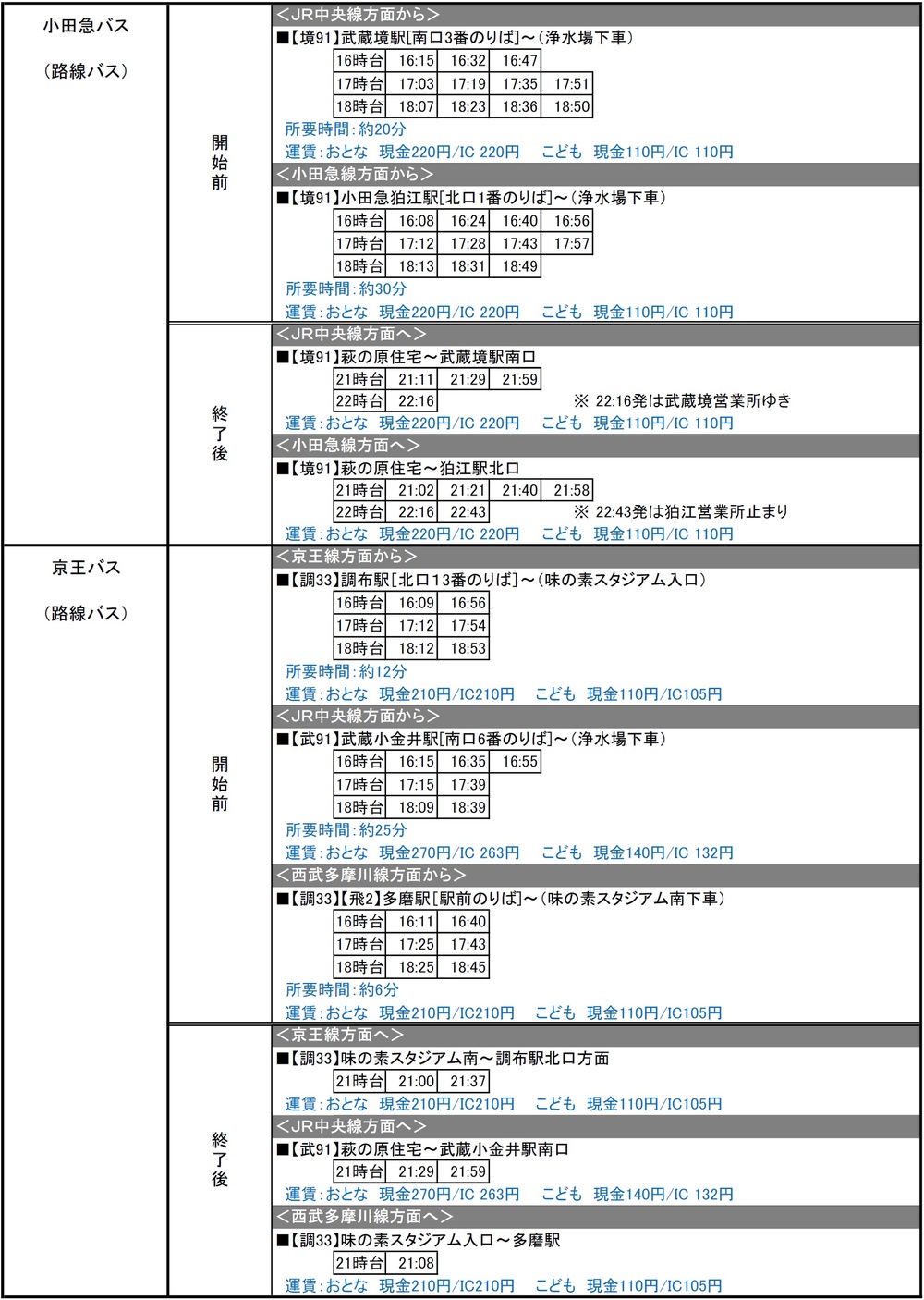 6月27日(周日) 2021明治安田生命J1聯賽 第20節 vs 大分Trinita(19:00開球/味之素體育館)將提供接駁巴士及路線巴士的相關資訊。