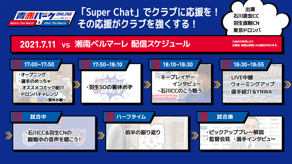 7/11(周日)湘南戰『AO-AKA PARK線上Before/After The Match presented by mechacomic』舉辦通知