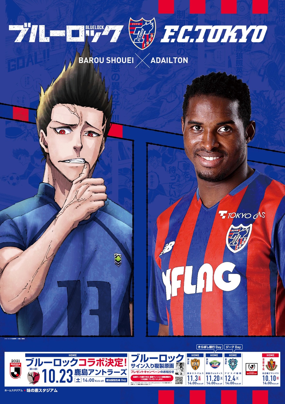 10月23日(周六)鹿島Antlers戰將舉辦與週刊少年Magazine人氣漫畫《Blue Lock》的合作活動。