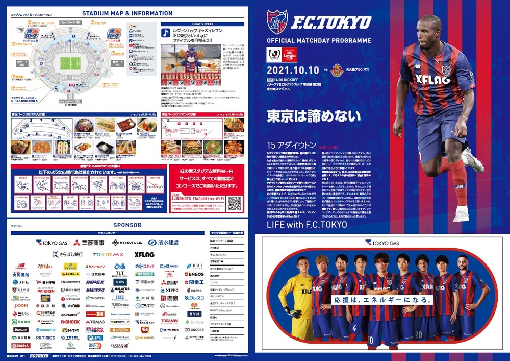 10/10(周日) 名古屋戰 官方比賽日節目 2021/10/9 比賽資訊 10月10日(周日) 2021 J聯賽YBC Levain盃 Prime階段 準決賽 第2戰 vs 名古屋Grampus(14:00開球/味之素體育館)的官方比賽日程節目,現公告如下。 □官方比賽日程2021</span></strong>【封面專訪】Adailton 選手・頁數:B4尺寸(對摺) 4頁※可從頁面底部的PDF查看。 ◇比賽資訊請點此 ▽以PDF格式查看請點此 官方比賽日程表(1010YLC名古屋).pdf