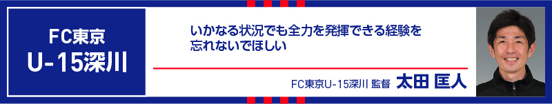 在「高圓宮盃全日本U-15足球錦標賽」中,我們在16強賽中敗北,感到非常遺憾。這一年我們反覆思考為何成功、為何失敗,並有許多挑戰的機會。我們絕不會忘記自己思考、挑戰並得出的答案。我相信選手們會將這些充實的經驗,必定連結到未來的努力中。