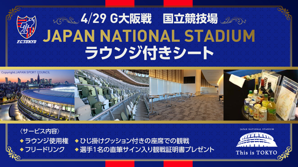 在FC東京,將於4月29日(周五祝) 2022明治安田生命J1聯賽 第10節對陣Gamba大阪戰(19:00開球/日本國立體育場)實施「附設休息室座位」的販售。這是日本國立體育場改修後,首次作為單獨球隊主場比賽舉辦的紀念性比賽,敬請務必以特別座位觀賞本場比賽。