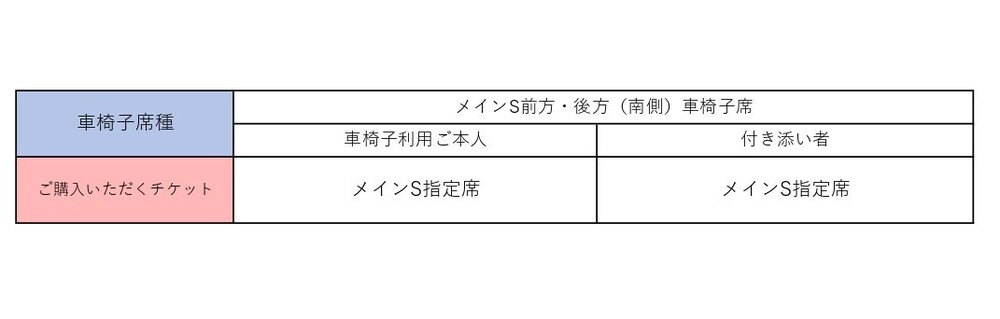 ※僅限穿著訪客隊伍制服或商品觀賽的輪椅席種類為主看台S前方輪椅席(南側)、主看台S後方輪椅席(南側)。