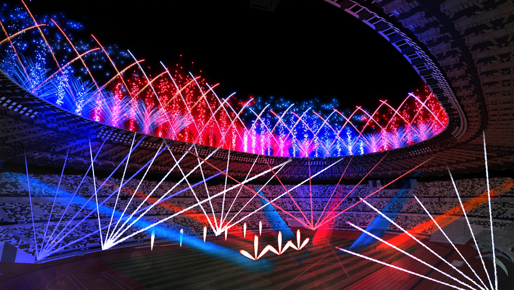 在體育館屋頂上360度一周施放約1100發特殊效果煙火的同時,還會進行計28台移動燈光和雷射的照明演出。此外,在場邊還會進行震撼的火焰演出。