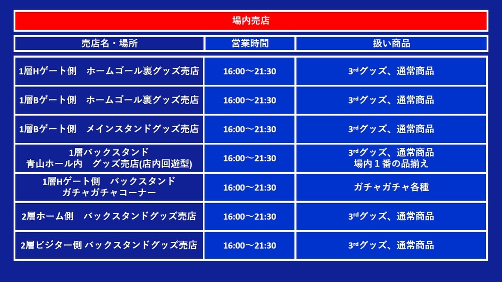 (若開球時仍有庫存,場內販賣部也可能會販售。)