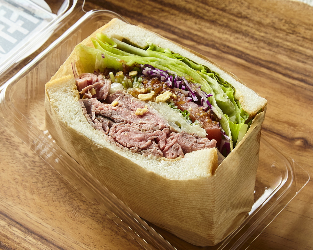 這是使用大蒜醬製作的,其他地方無法品嚐到的特別烤牛肉三明治。