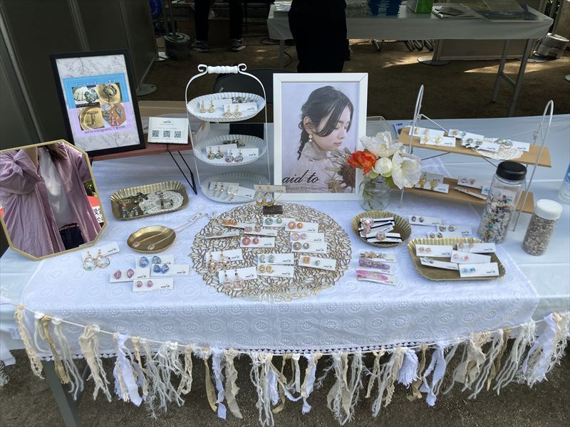 ①展示及販售使用荒川清掃活動中收集的微塑膠製成的飾品/鑰匙圈
