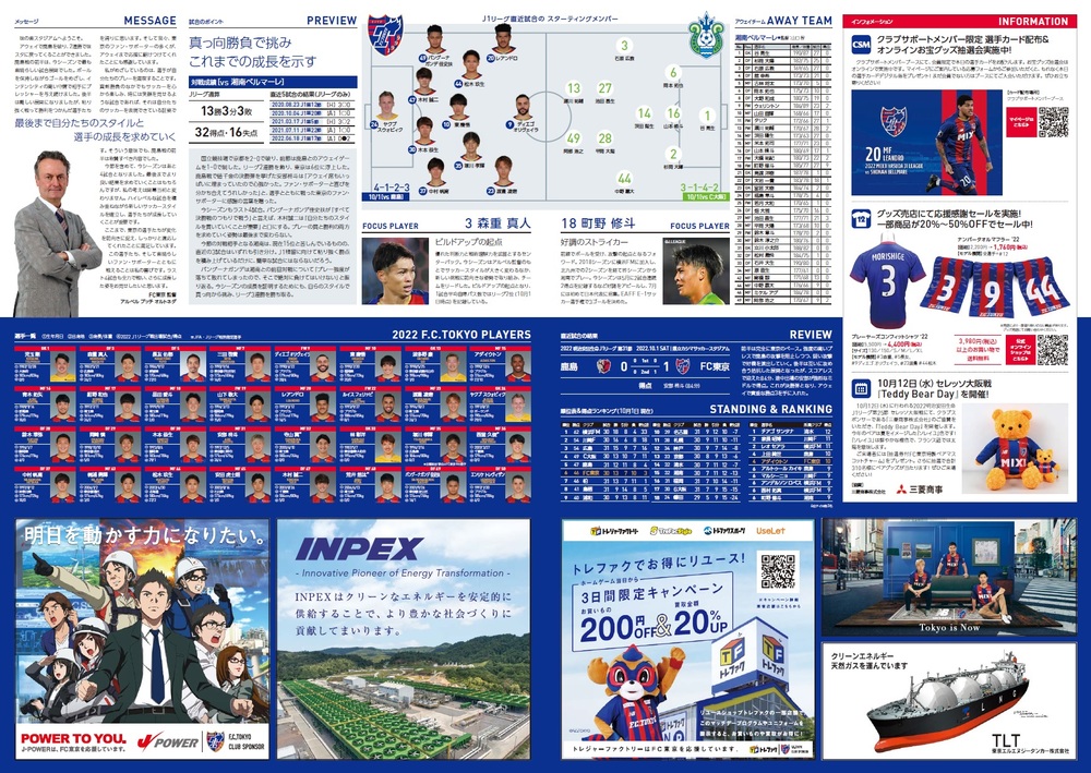 10/8(周六) 湘南戰 官方比賽日程節目 2022/10/7 比賽資訊 10月8日(周六) 2022明治安田生命J1聯賽 第32節 vs湘南Bellmare(15:00開球/味之素體育館)的官方比賽日程節目,現公告如下。 □官方比賽日程2022</span></strong>【訪談】Diego OLIVEIRA 選手・頁數:B4尺寸(對折) 4頁※可從頁面底部的PDF查看。 ◇比賽資訊請點這裡 ▽以PDF格式查看請點此 2022官方比賽日程節目(1008#32湘南).pdf