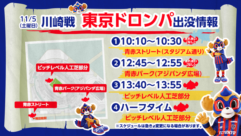 11/5(周六) 川崎Frontale戰『TOKYO DOROMPA』出沒情報!