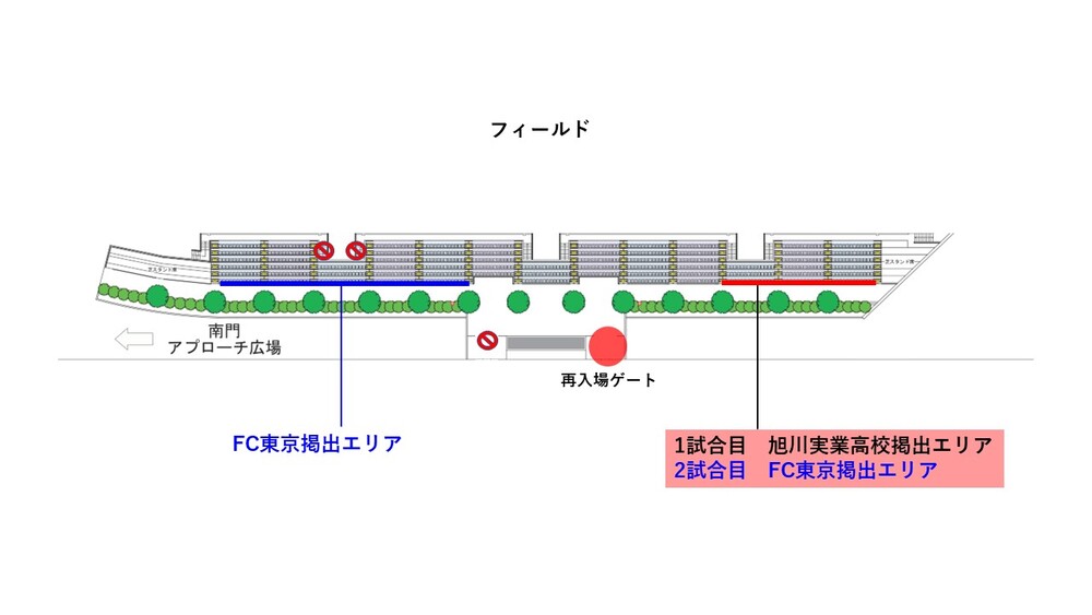除相關人員席外,所有區域皆為FC東京的觀賽與應援區域。