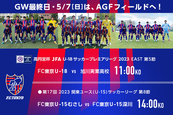 【5/2追加】5/7(周日) FC東京U-18、FC東京U-15武藏、FC東京U-15深川 AGF球場同日比賽舉行相關事宜