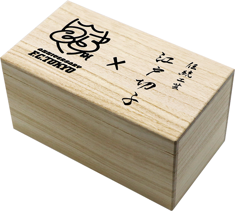 選手們在場上快速切入奔跑的速度感、掀起的風、精彩的勝利球刺入球網的樣子、支持者們沸騰的歡呼聲,所有這些都在這個玻璃杯中表現出來。這個玻璃杯以粗細長短不同的線條複雜交錯,蘊含著工匠希望大家能回想或感受到各種場景的心意,是FC東京原創的圖案。