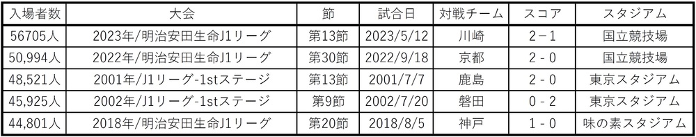 俱樂部史上主場最高入場人數達成 2023/5/12 來自俱樂部的通知 今日,俱樂部史上主場最多入場人數達56,705人,前來日本國立體育場觀賽的觀眾。</span> 感謝您蒞臨日本國立體育場。請繼續支持FC東京。