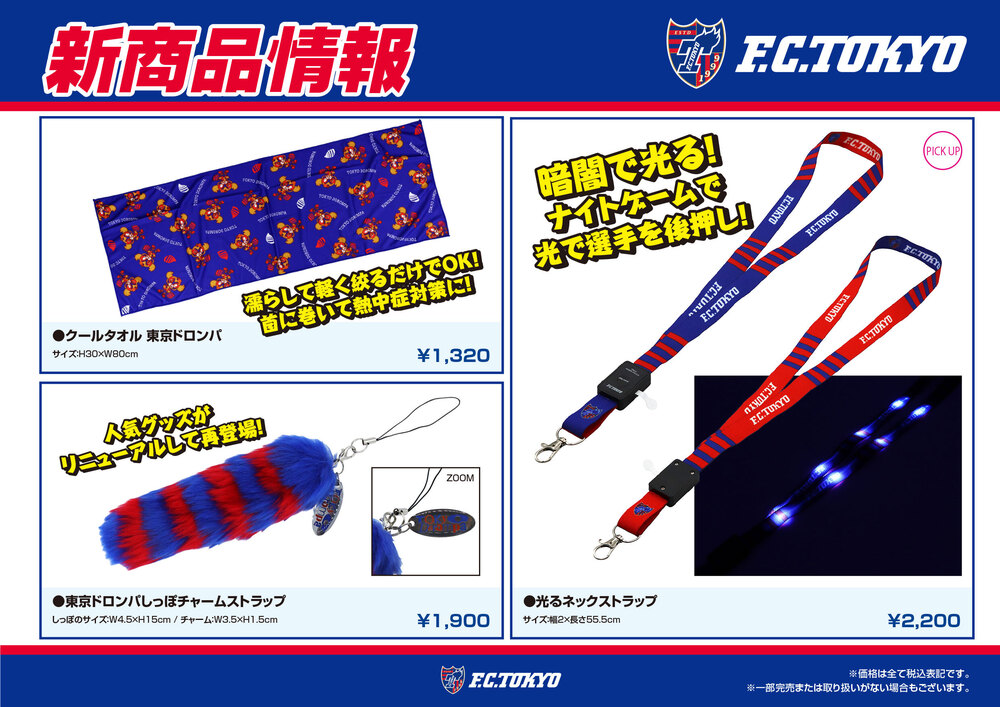 8/6(周日)對陣C大阪戰 商品販售攤位開設通知 2023/8/5 商品 8月6日(周日)2023明治安田生命J1聯賽對戰Cerezo大阪(19:00開球/YODOKO櫻花體育場)將販售FC東京商品。請務必購買作為觀賽紀念。 《精選》□【客場】比賽日限定圍巾鑰匙圈 田晃太選手 □販售地點・時間【地點】中央停車場前廣場 【時間】15:00~比賽結束後30分鐘