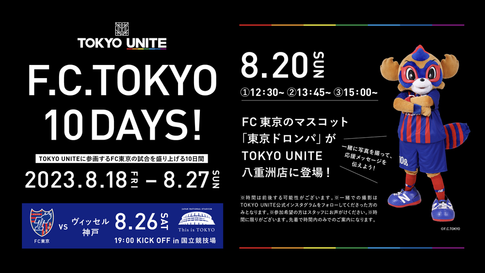 FC東京參與的TOKYO UNITE與8月26日(周六)在日本國立體育場舉行的比賽合作企劃,將於8月18日(周五)至8月27日(周日)期間,以TOKYO UNITE東京Midtown八重洲店為中心舉辦。