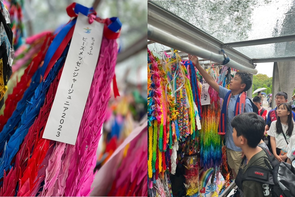 之後,我們進行了祈求和平的摺鶴獻納儀式。